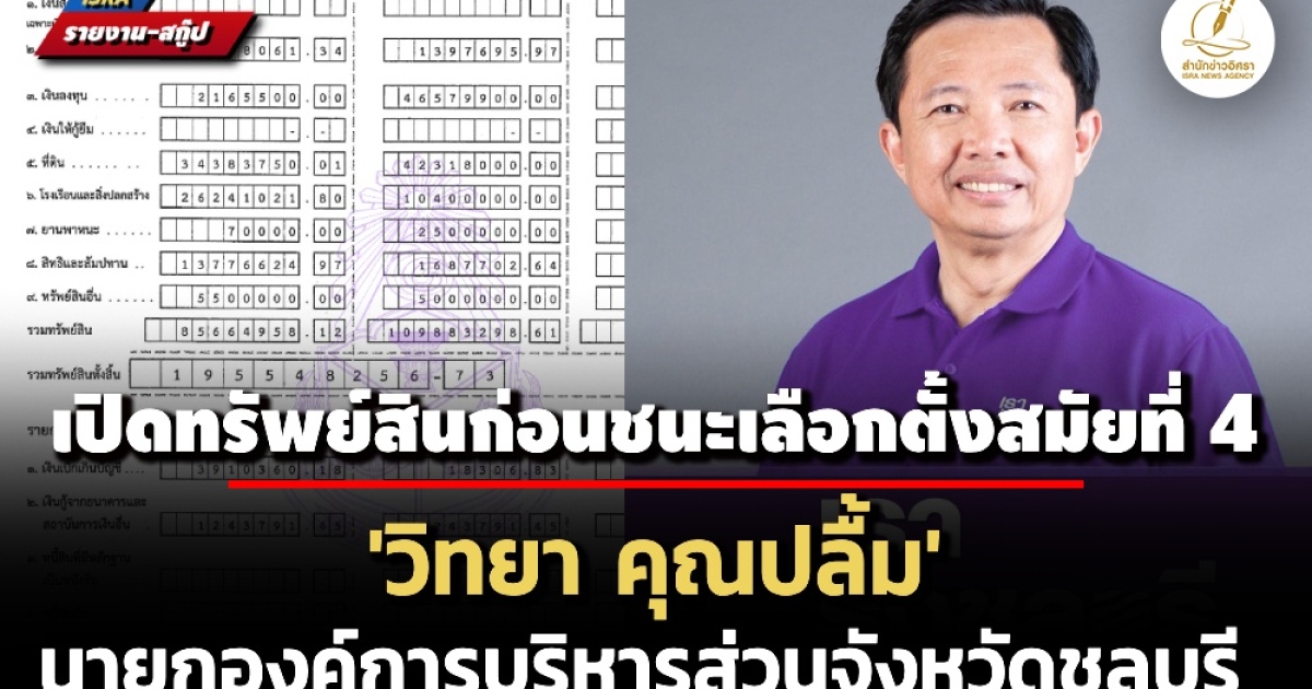 ป.ป.ช. เปิดทรัพย์สิน 'วิทยา คุณปลื้ม' กรณีพ้นตำแหน่งนายกอบจ.ชลบุรี สมัยที่สาม ก่อนชนะเลือกตั้งสมัยที่สี่-เทียบกรณีเข้ารับตำแหน่งปี 2564 เพิ่มขึ้น 39 ล.-ปี 2567 ได้มรดก 49 ล.