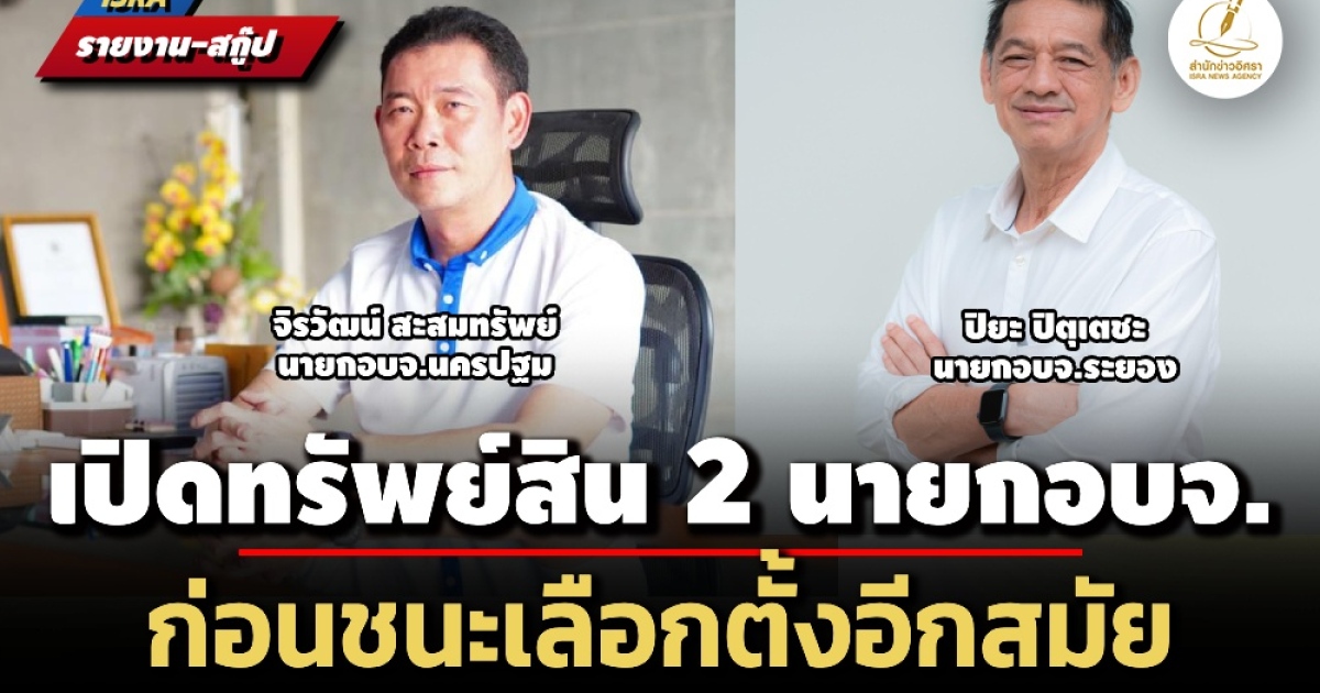 ป.ป.ช. เปิดทรัพย์สิน 2 นายกองค์การบริหารส่วนจังหวัด ก่อนชนะเลือกตั้งอีกสมัย 'จิรวัฒน์ สะสมทรัพย์' อบจ.นครปฐม 417 ล.-'ปิยะ ปิตุเตชะ' อบจ.ระยอง 407 ล. เพิ่มขึ้นจากปี 64 151 ล.