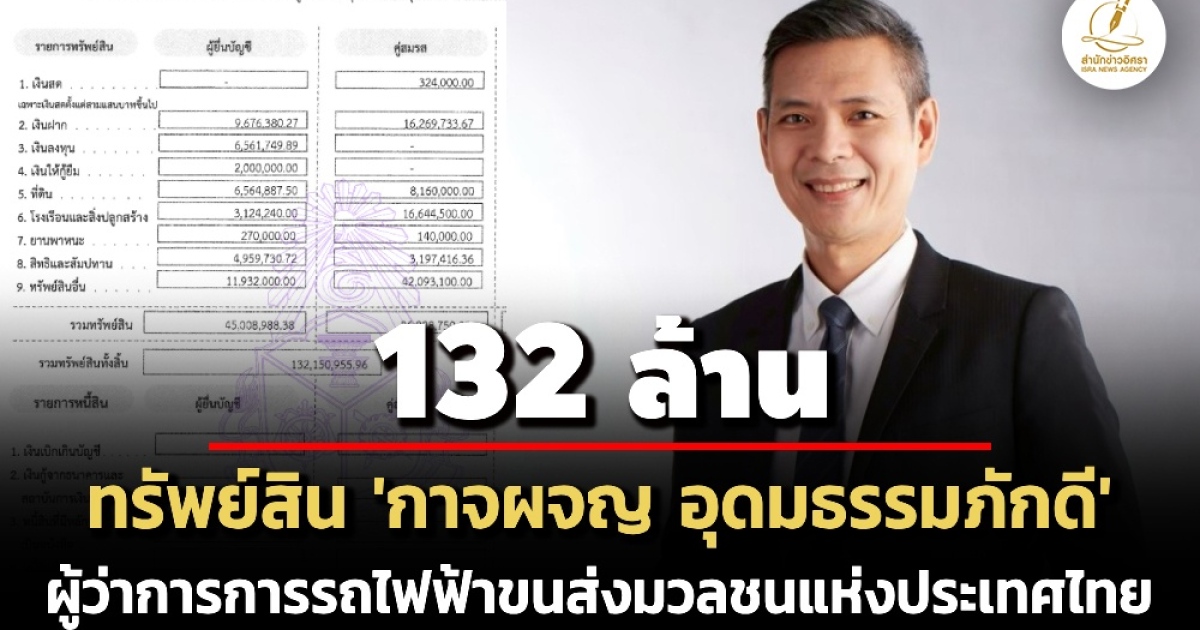 สำนักข่าวอิศรา (www.isranews.org) รายงานว่า เมื่อเร็ว ๆ นี้ สำนักงานคณะกรรมการการป้องกันและปราบการทุจริตแห่งชาติ (ป.ป.ช.) เปิดเผยบัญชีแสดงรายการทรัพย์สินและหนี้สินผู้ดำรงตำแหน่งระดับสูง ราย นายกาจผจญ อุดมธรรมภักดี ผู้ว่าการการรถไฟฟ้าขนส่งมวลชนแห่งประเทศไทย (รฟม.) กรณีเข้ารับตำแหน่ง เมื่อวันที่ 27 มิ.ย. 2568