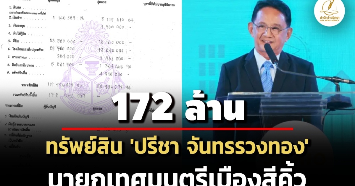 สำนักข่าวอิศรา (www.isranews.org) รายงานว่า เมื่อวันที่ 17 ก.ย. 2568 สำนักงานคณะกรรมการการป้องกันและปราบการทุจริตแห่งชาติ (ป.ป.ช.) เปิดเผยบัญชีแสดงรายการทรัพย์สินและหนี้สินองค์กรปกครองส่วนท้องถิ่น ราย นายปรีชา จันทรรวงทอง นายกเทศมนตรีเมืองสีคิ้ว จังหวัดนครราชสีมา กรณีเข้ารับตำแหน่ง เมื่อวันที่ 20 มิ.ย. 2568