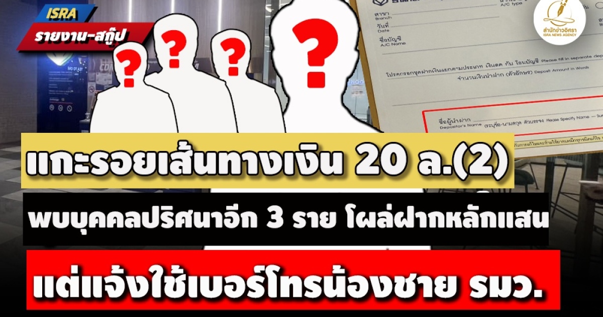 - แกะรอยเส้นทางเงิน 20 ล.(1) บุคคลปริศนาโผล่ฝาก 1 ล้าน แต่แจ้งใช้เบอร์โทรน้องชาย รมว.