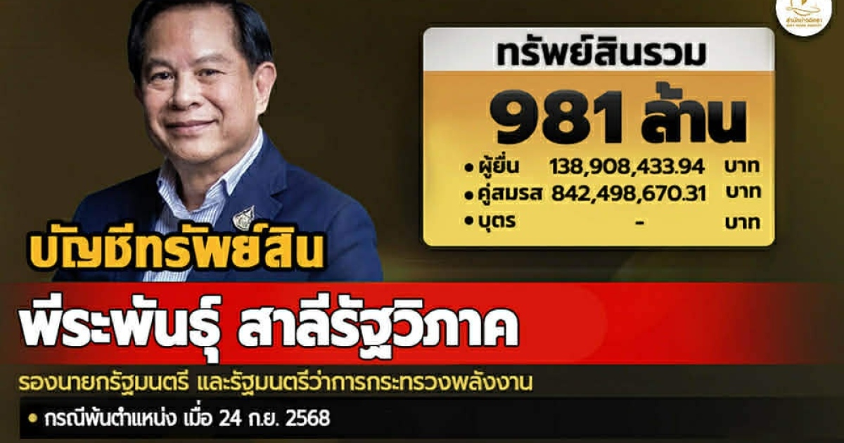 INFO : ทรัพย์สิน ‘พีระพันธุ์ สาลีรัฐวิภาค’ พ้นรองนายกฯ รมว.พลังงาน 981 ล้าน