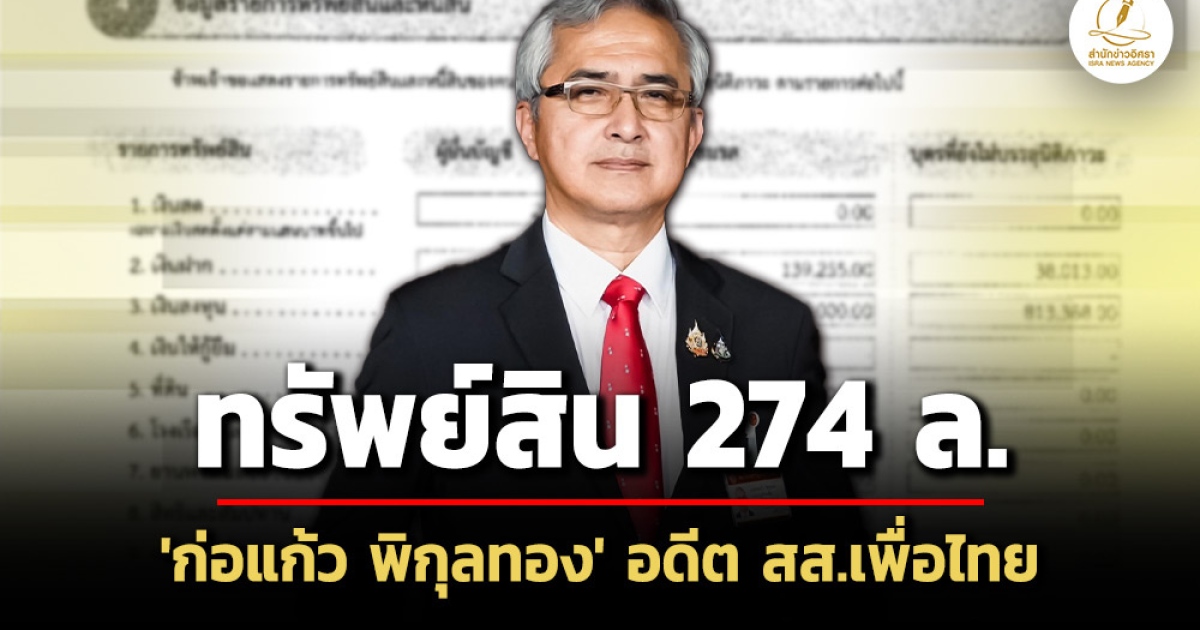 สำนักข่าวอิศรา (www.isranews.org) รายงานว่า เมื่อเร็วๆ นี้ สำนักงานคณะกรรมการการป้องกันและปราบปรามการทุจริตแห่งชาติ (ป.ป.ช.) เปิดเผยบัญชีแสดงรายการทรัพย์สินและหนี้สินของ นายก่อแก้ว พิกุลทอง สมาชิกสภาผู้แทนราษฎร (สส.) กรณีพ้นจากตำแหน่ง เมื่อวันที่ 12 ธันวาคม 2568