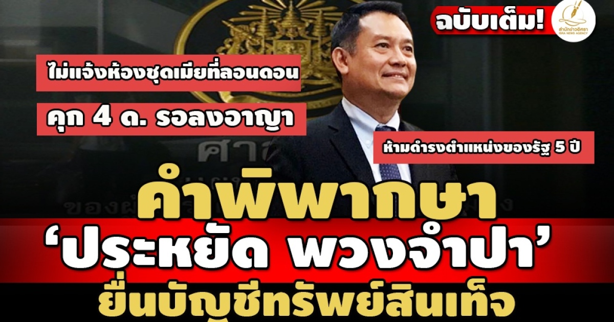 สำนักข่าวอิศรา (www.isranews.org) รายงานไปแล้วว่า เมื่อวันที่ 23 ก.พ.2566 ศาลฎีกาแผนกคดีอาญาของผู้ดำรงตำแหน่งทางการเมือง (อม.) สนามหลวง นัดฟังคำพิพากษาคดีนายประหยัด พวงจำปา อดีต อดีตรองเลขาธิการคณะกรรมการป้องกันและปราบปรามการทุจริตแห่งชาติ (ป.ป.ช.) ถูกกล่าวหายื่นบัญชีทรัพย์สินและหนี้สินอันเป็นเท็จฯ จำนวนเงิน 227 ล้านบาท