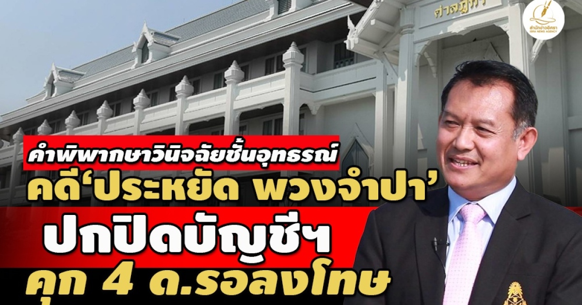 ละเอียดยิบ! เปิดคำพิพากษาชั้นวินิจฉัยอุทธรณ์ ศาลฎีกา คดี ‘ประหยัด พวงจำปา’ อดีตรองเลขาฯ ป.ป.ช. ปกปิดบัญชีทรัพย์สิน ยืนตามศาลฎีกาแผนกคดีอาญาของผู้ดำรงตำแหน่งทางการเมือง ห้ามดำรงตำแหน่ง จนท.รัฐ 5 ปี จำคุก 4 เดือน ปรับ 10,000 บาท รอลงโทษ 1 ปี
