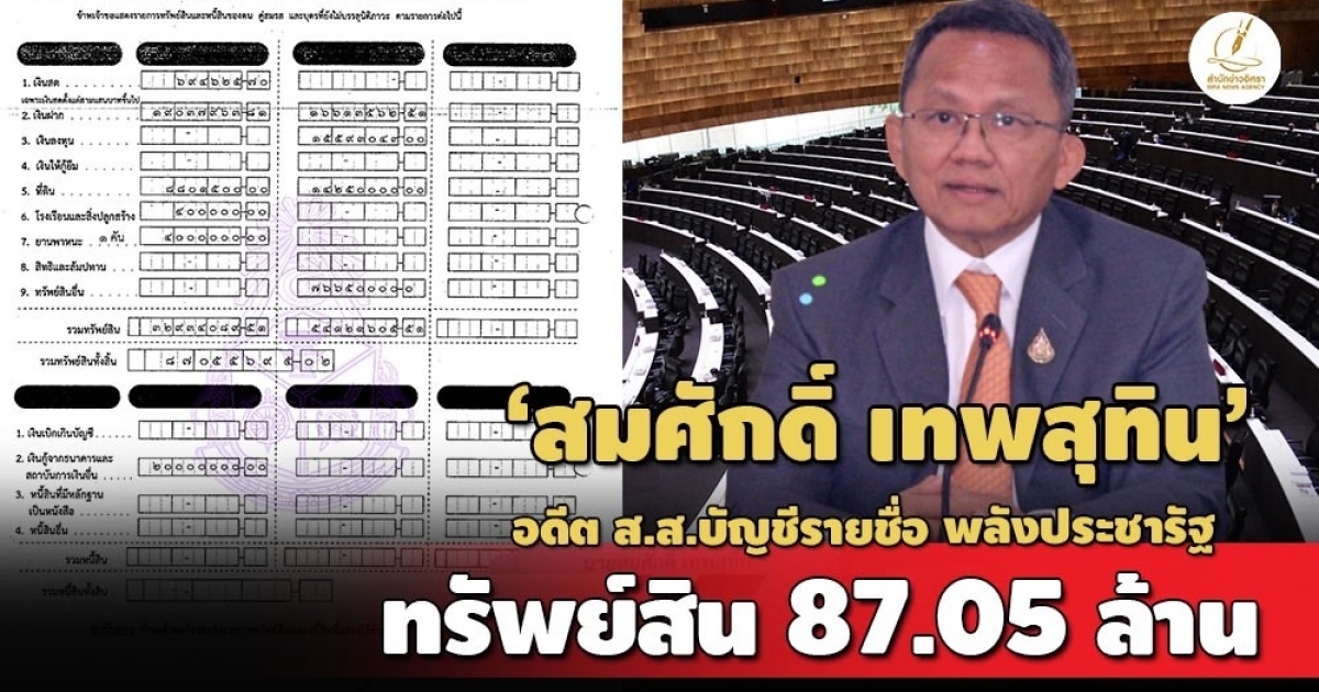 ป.ป.ช.เปิดบัญชีทรัพย์สิน 'สมศักดิ์ เทพสุทิน' กรณีพ้นตำแหน่ง ส.ส.บัญชีรายชื่อ พรรคพลังประชารัฐ ทรัพย์สินกว่า 87 ล. มีที่ดินในลำปาง-สุโขทัย รายได้ 1.6 ล./ปี