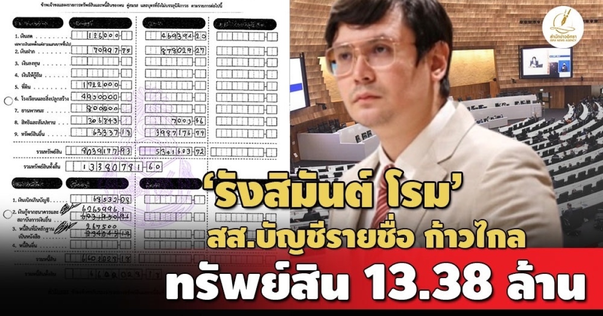 ป.ป.ช.เปิดบัญชีทรัพย์สิน 'รังสิมันต์ โรม' กรณีพ้นตำแหน่ง สส.บัญชีรายชื่อ พรรคก้าวไกล ทรัพย์สินกว่า 13 ล้าน มีเหรียญดิจิทัล 15 สกุล มีบ้านมูลค่า 4.9 ล. รายได้ 1.9 ล./ปี ชำระหนี้ กยศ.หมดแล้ว