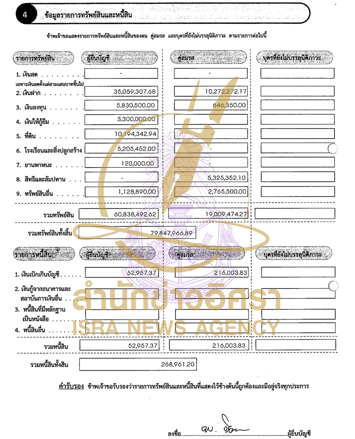 โดย พล.ต.อ.เพิ่มพูน พร้อมด้วย น.ส.จิตติมา อุทัยเฉลิม อยู่กินกันฉันสามีภรรยา แจ้งมีทรัพย์สินทั้งสิ้น 79,847,966 บาท