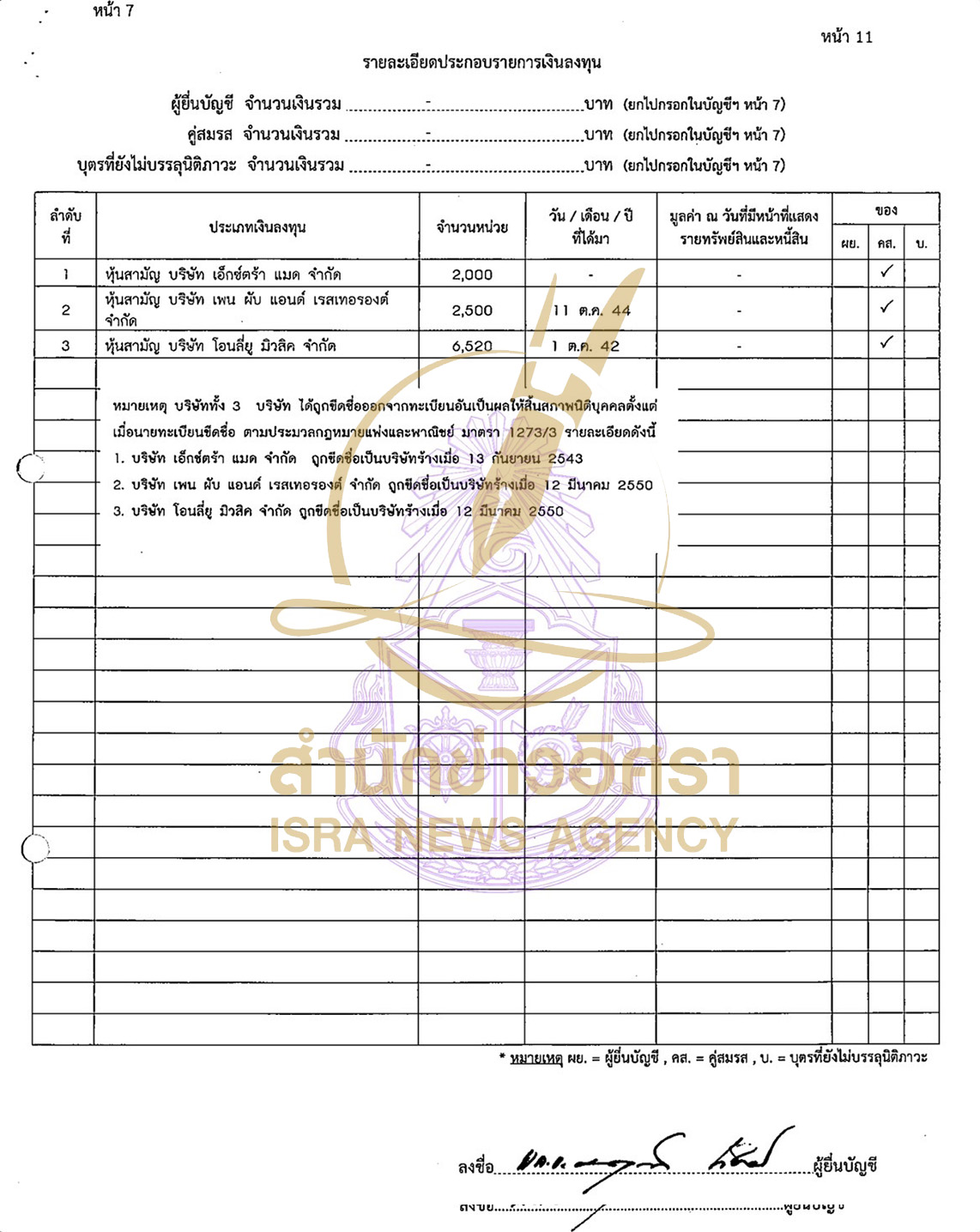 อย่างไรก็ดี ในหน้ารายการเงินลงทุน นางกุลยา แจ้งถือหุ้นสามัญบริษัท เอ็กซ์ตร้า แมด จำกัด, หุ้นสามัญ บริษัท เพน ผับ แอนด์ เรสเทอรองต์ จำกัด, หุ้นสามัญ บริษัท โอนลี่ยู มิวสิค จำกัด ทั้งหมด ไม่ได้ระบุมูลค่าไว้ และปัจจุบันทั้งสามบริษัท ถูกขีดชื่อเป็นบริษัทร้างหมดแล้ว