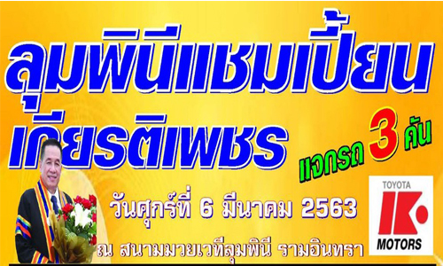 ทั้งนี้ สำนักข่าวอิศรา เคยตรวจสอบพบไปแล้วว่า การจัดแข่งขันชกมวยรายการใหญ่ที่ชื่อว่า 'ลุมพินีแชมเปี้ยนเกริกไกร' (เกียรติเพชร) ดังกล่าว อยู่ภายใต้การดูแลของทีมงานมวยไทยเกียรติเพชร มีโปรโมเตอร์ชื่อดังอย่าง นายพีรพงศ์ ธีระเดชพงศ์ หรือ เฮียชุ้น เกียรติเพชร เป็นทีมงานผู้บริหาร