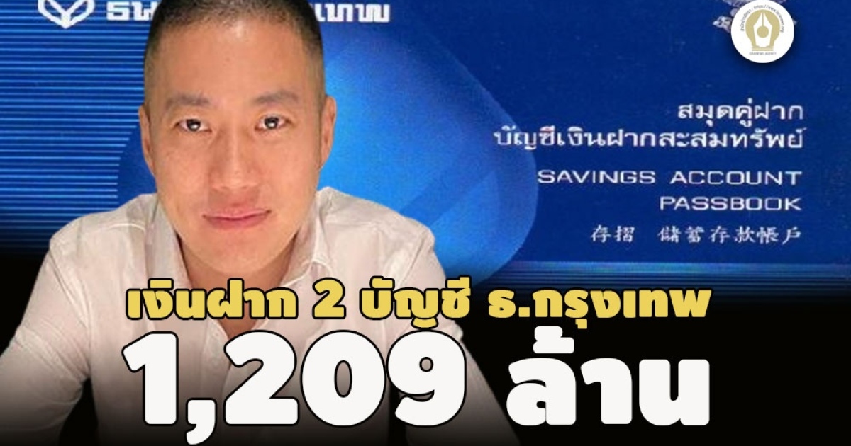 เงินในบัญชีเงินฝากธนาคารกรุงเทพ 2 บัญชี มีมากสุด แยกเป็น บัญชีแรก 1,197,694,152.48 บาท บัญชีสอง อีก 11,542,450 บาท (ยอดรวม 2 บัญชี 1,209,236,602.48 บาท )