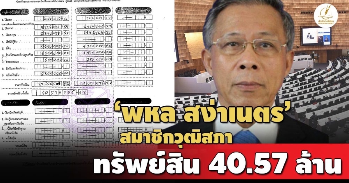 ป.ป.ช.เปิดบัญชีทรัพย์สิน 'พหล สง่าเนตร' กรณีเข้าตำแหน่ง สมาชิกวุฒิสภา ทรัพย์สินกว่า 40 ล้าน สะสมทองรูปพรรณ-ทองคำแท่ง-สมเด็จวัดระฆัง รายได้ 2.2 ล./ปี