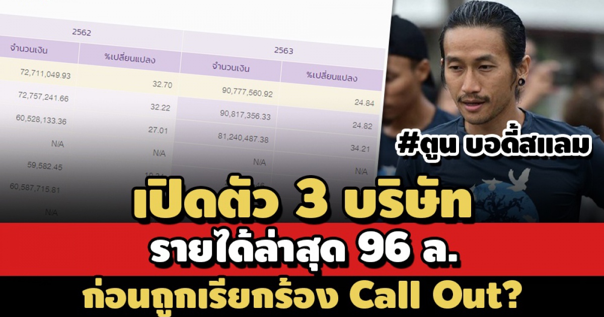 พลิก 3 บริษัท ‘ตูน บอดี้สแลม’ รายได้ปี 63 รวม 96 ล้าน ‘จักรยานอากาศ-วันดี คืนดี’ 2 ธุรกิจรับจัดงานแสดงดนตรีเป็นหลัก ปี 63 เพิ่งตั้งอีกแห่ง เป็นที่ปรึกษาธุรกิจการตลาด ก่อนถูกมวลชนเรียกร้อง ‘Call Out’ แสดงจุดยืนการเมือง?