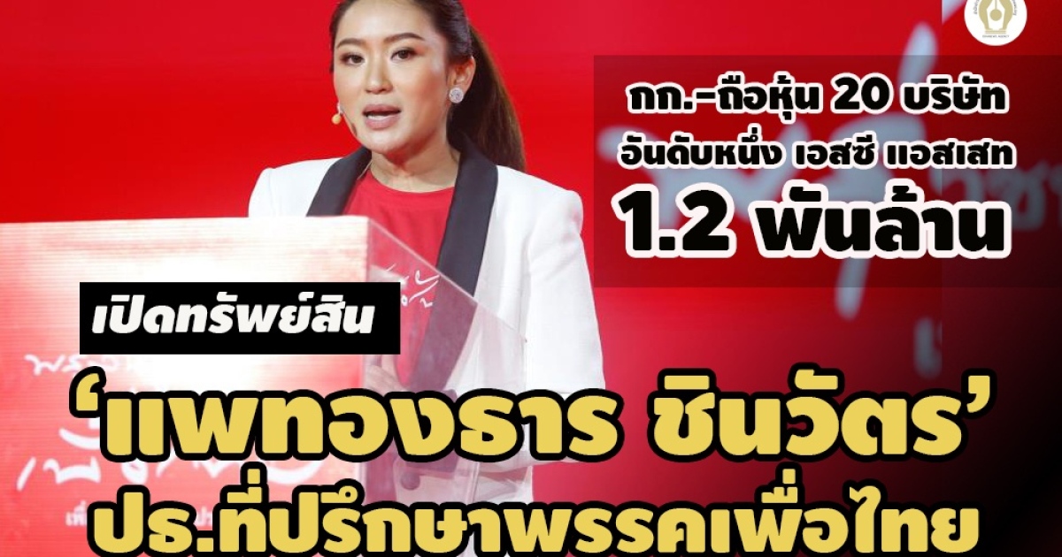 อีกหนึ่ง ’ตัวแสดง’ทางการเมือง! พลิกข้อมูลธุรกิจ ‘แพทองธาร ชินวัตร’ กก.-ถือหุ้น 20 บริษัท อันดับหนึ่ง เอสซี แอสเสท คอร์ปอเรชั่น 1.2 พันล. ก่อนนั่ง ปธ.ที่ปรึกษาฯพรรคเพื่อไทย ย้อนหลังยุคคุณพ่อทักษิณนั่งรองนายกฯ แจ้ง ป.ป.ช. ทรัพยสิน 3 พี่น้องโอ๊ค-เอม-อุ๊งอิ๊ง 3.8 พันล้าน