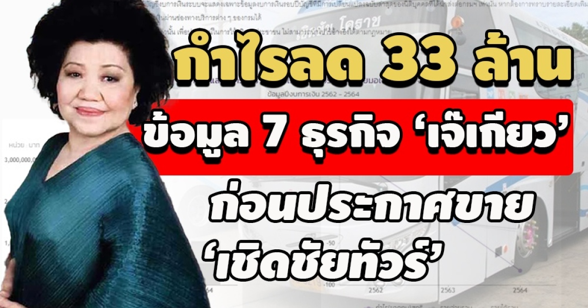ส่วนข้อมูลอื่นๆของบริษัทพบว่ามีกรรมการสามคนได้แก่ 1.นางสุจินดา เชิดชัย และ 2.นางสาวกฤตินี เชิดชัย จดทะเบียนก่อตั้งบริษัทเมื่อวันที่ 15 ธ.ค.2524 ทุนจดทะเบียน 15 ล้านบาท ระบุประเภทธุรกิจว่าการขนส่งผู้โดยสารทางรถโดยสารประจำทางในชนบท