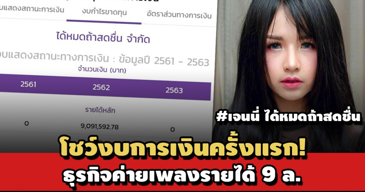 ส่องงบการเงินธุรกิจค่ายเพลง ‘เจนนี่ ได้หมดถ้าสดชื่น’ แจ้งครั้งแรกปี 63 รายได้รวม 9 ล้านเศษ กำไร 1.7 ล้าน ก่อนกระแสดราม่า