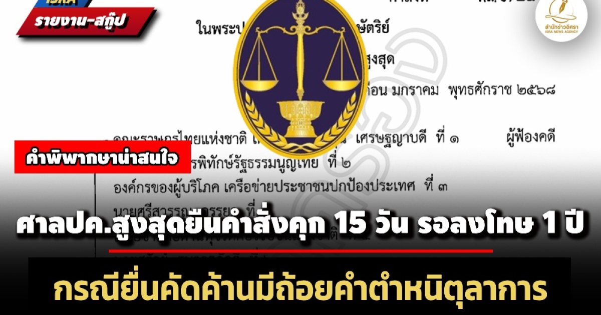 @ ศาลปกครองชั้นต้นมีคำสั่งลงโทษจำคุกผู้ถูกกล่าวหา 15 วัน รอลงโทษ 1 ปี