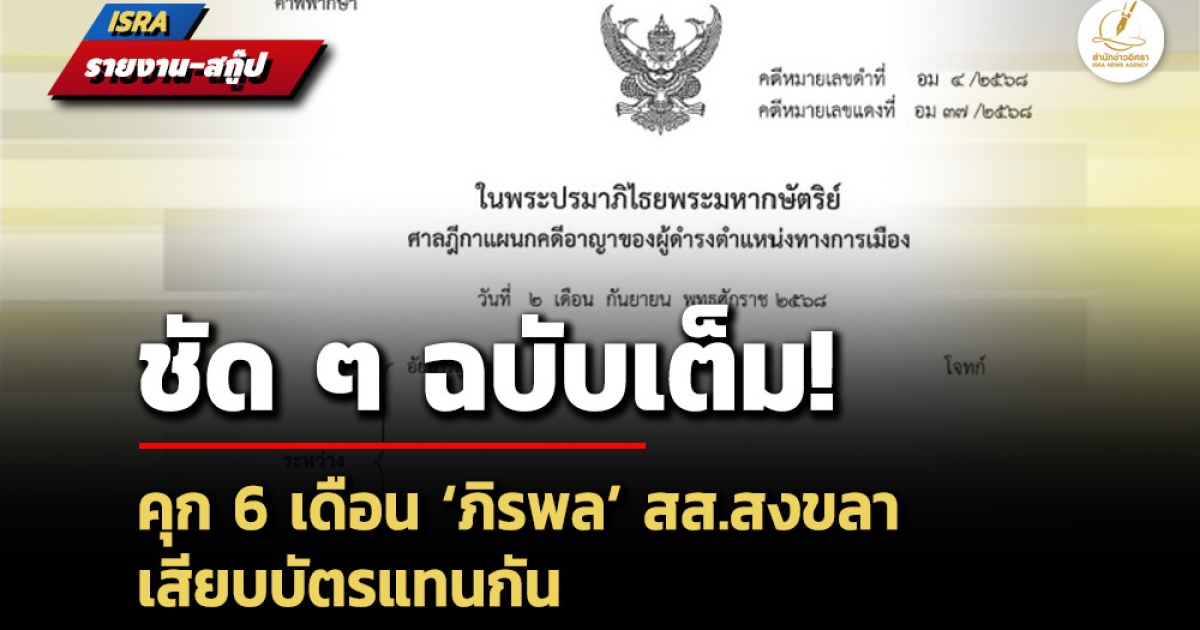 คำพิพากษา คดีหมายเลขดำที่ อม 4/2568 คดีหมายเลขแดงที่ อม 37/2568ศาลฎีกาแผนกคดีอาญาของผู้ดำรงตำแหน่งทางการเมืองอออวันที่ 2 เดือน กันยายน พุทธศักราช 2568 ระหว่าง อัยการสูงสุดโจทก์ ระหว่าง นายภิรพล ลาภาโรจน์กิจ จำเลย