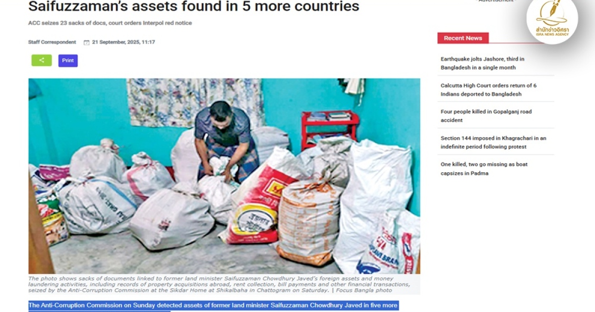 เรียบเรียงจาก:https://www.newagebd.net/post/country/276708/documents-on-ex-land-ministers-oversees-assets-money-laundering-seized-in-ctg