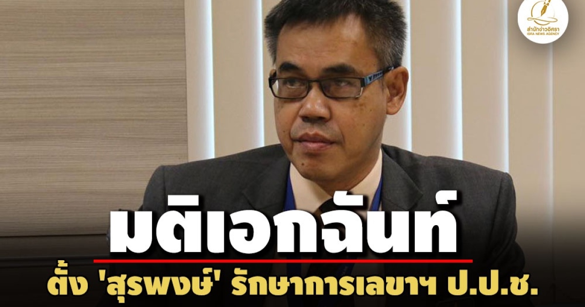 ป.ป.ช.ลงมติเอกฉันท์ตั้ง 'สุรพงษ์ อินทรถาวร' รักษาการตำแหน่งเลขาฯ แทน 'อรุณ อมรวิริยะกุล' มีผลตั้งแต่วันที่ 1 ต.ค. 68 เป็นต้นไป เพื่อขับเคลื่อนงานปรับโครงสร้างสำนักงานให้ต่อเนื่อง