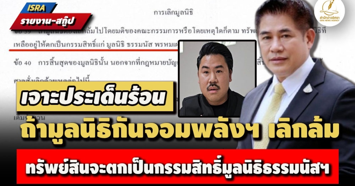 พร้อมระบุว่า “ตามข้อบังคับของมูลนิธิกันจอมพลังช่วยสู้ ข้อ 39 กำหนดว่า ถ้ามูลนิธิต้องเลิกล้มไป..ทรัพย์สินทั้งหมดของมูลนิธิที่เหลืออยู่ให้ตกเป็นกรรมสิทธิ์แก่มูลนิธิธรรมนัส พรหมเผ่า"