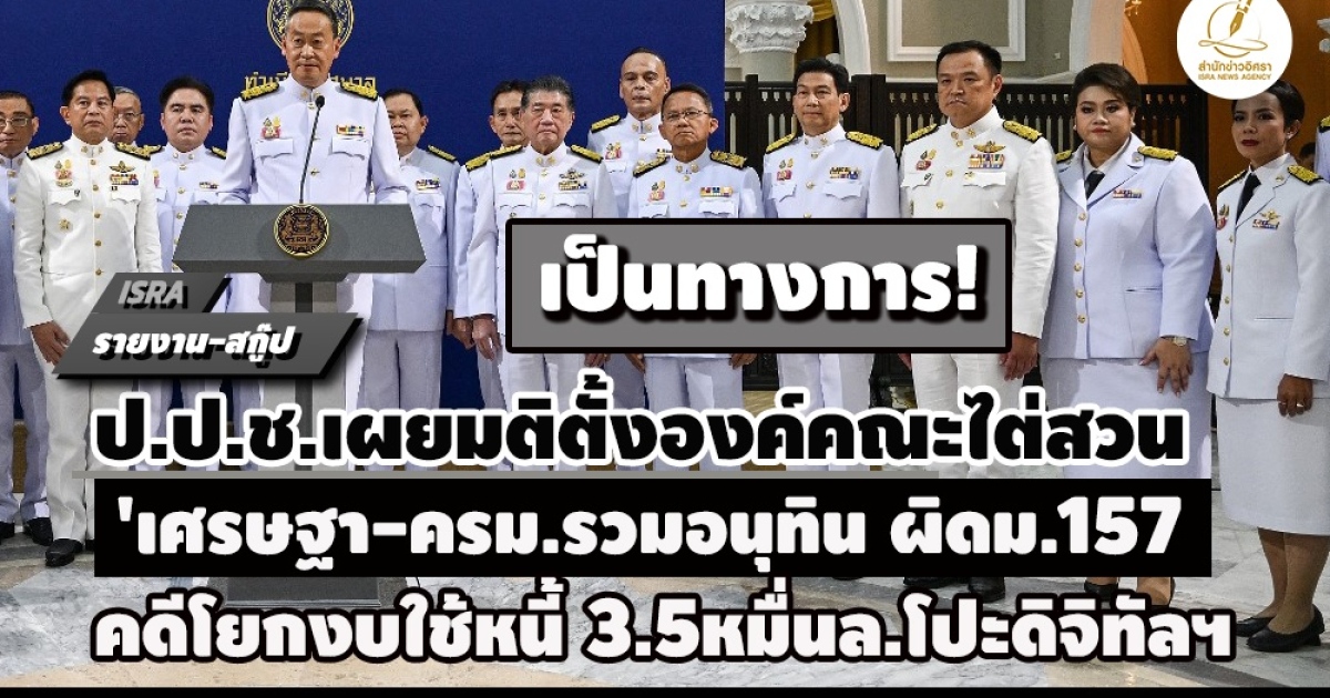 - ป.ป.ช.ตั้งองค์คณะไต่สวน'เศรษฐา-ครม.รวมอนุทิน ผิดม.157 โยกงบใช้หนี้ 3.5หมื่นล.โปะดิจิทัลฯ