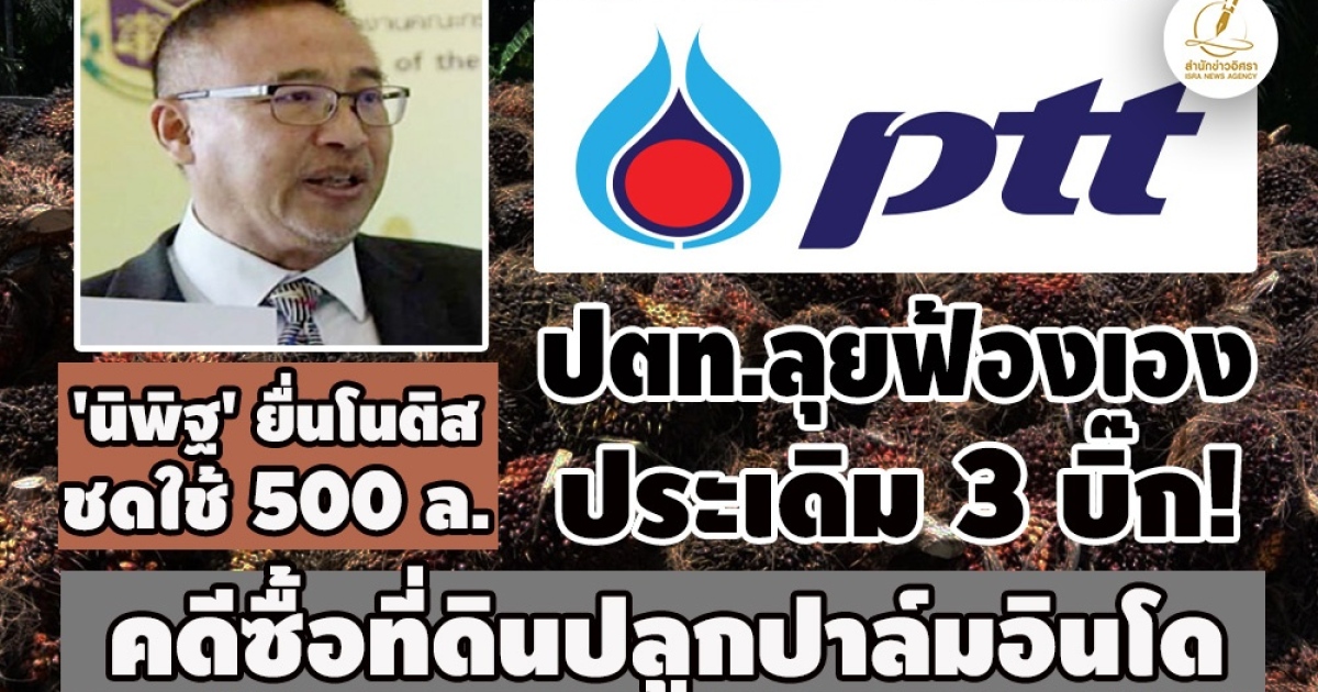 หลัง ป.ป.ช.ตีตกข้อกล่าวหาคดีซื้อที่ดินปลูกปาล์มอินโด สอบมา 10 ปี เอาผิดใครไม่ได้! ล่าสุด บอร์ดปตท. ไฟเขียวลงมติฟ้องคดีเองแล้ว ประเดิมอดีตผู้บริหารระดับสูง 3 รายก่อน อยู่ระหว่างตรวจคำฟ้อง รอศาลอาญาคดีทุจริตฯ นัดไต่สวนมีมูลฟ้องหรือไม่ ด้าน นิพิฐ อิศรางกูร ณ อยุธยา แจ้งโนติสขอให้ชดใช้ค่าเสียหาย-ค่าสินไหมทดแทน 500 ล้าน เหตุจงใจกระทำละเมิด เลิกจ้างไม่ชอบด้วยกฎหมาย