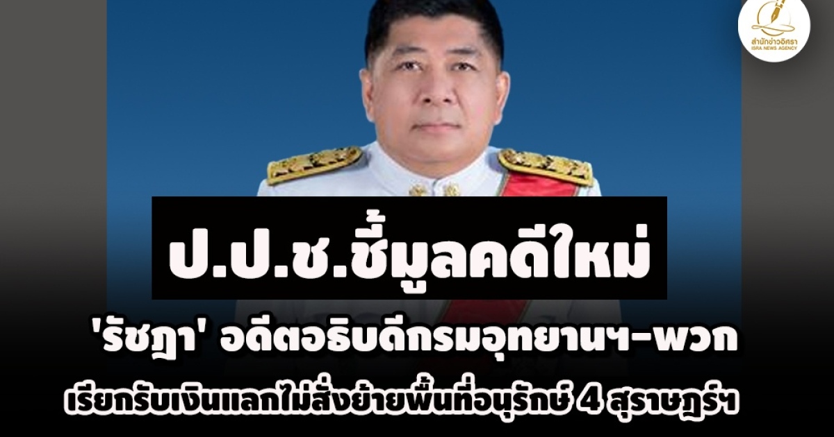 ป.ป.ช.ลงมติชี้มูลความผิด 'รัชฎา สุริยกุล ณ อยุธยา' อดีตอธิบดีกรมอุทยานห่งชาติฯ -พวก คดีใหม่ เรียกรับเงินผู้ใต้บังคับบัญชาแลกไม่มีคำสั่งย้ายออกจากตำแหน่งพ่วงทุจริตการจัดซื้อจัดจ้างงานบำรุงป่าชายเลนสำนักบริหารพื้นที่อนุรักษ์ที่ 4 สุราษฎร์ธานี ปี 2565 ส่งอสส.ฟ้องศาลดำเนินคดีอาญาแจ้งผู้บังคับบัญชาลงโทษวินัยแล้ว-ยังเป็นผู้บริสุทธิ์อยู่