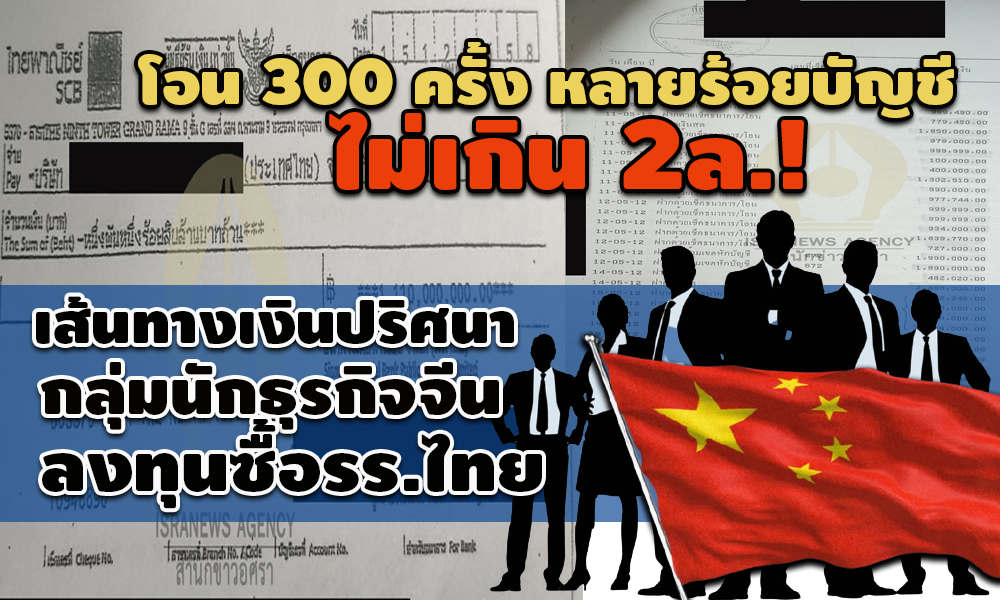 สำนักข่าวอิศรา (www.isranews.org) รายงานไปแล้วว่า เส้นทางการเงินในช่วงนำเงินเข้ามาลงทุนของกลุ่มนักธุรกิจจีน ถูกระบุว่า เงินจำนวนหลายร้อยล้านบาท มีการโอนมาจากบัญชีของชาวจีนจากประเทศลาว และจากบุคคลต่างๆ ในประเทศ ไม่ได้ถูกโอนมาจากบัญชีของบริษัทในประเทศจีน ที่ปรากฎชื่อเป็นผู้ร่วมลงทุนธุรกิจนี้โดยตรง