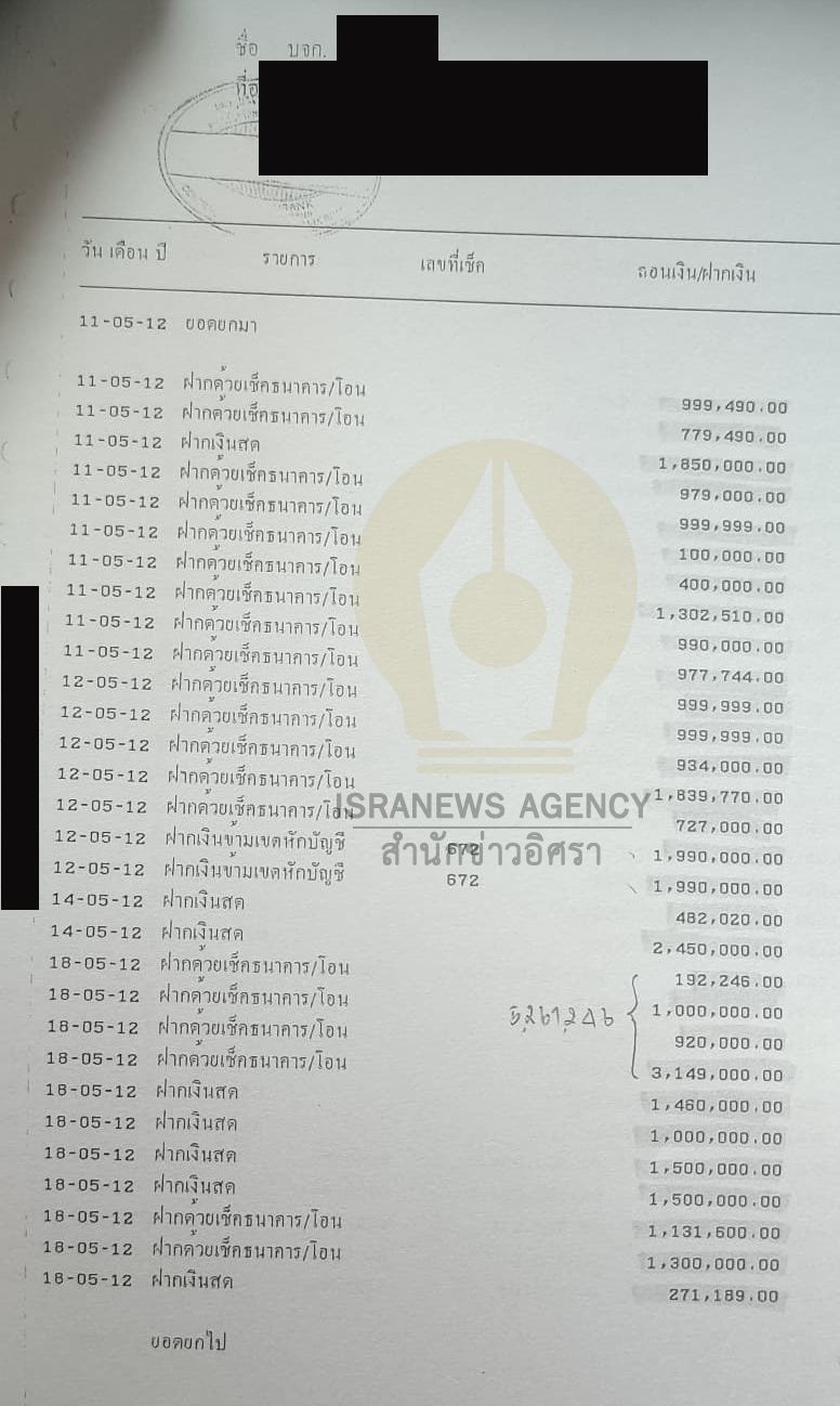 แต่จากหลักฐานพบว่า มีการโอนเข้ามาจำนวนเกือบ300 ครั้ง จากหลายร้อยบัญชี และเป็นการโอนด้วยเงินสดไม่เกินสองล้านบาท