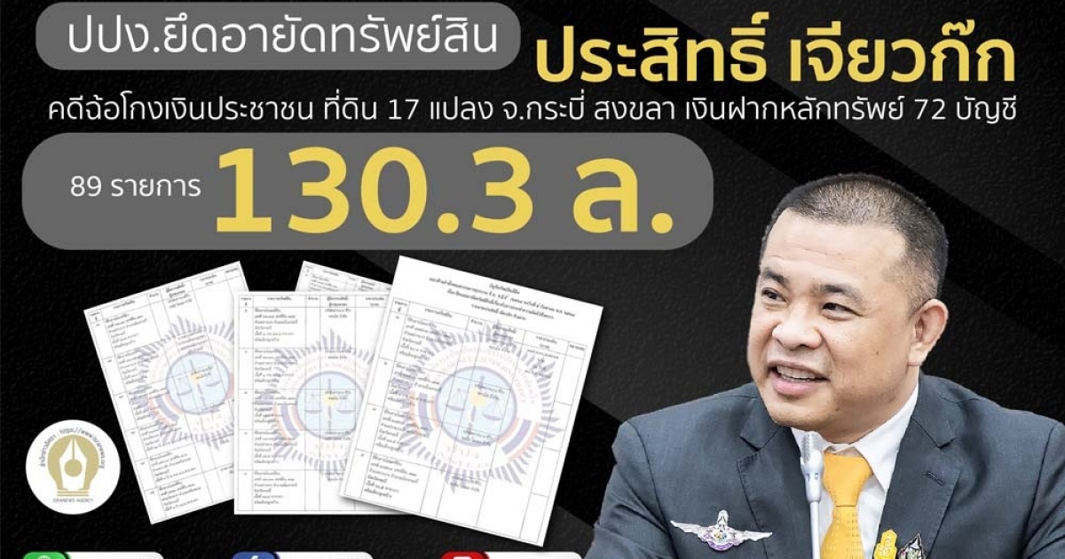 - ปปง.ยึดทรัพย์ ‘ประสิทธิ์ เจียวก๊ก’ กับพวก ที่ดิน เงินฝาก 89 รายการ 130.3 ล้าน