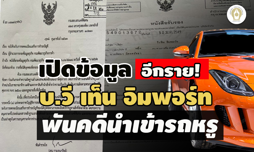บริษัท วี เท็น อิมพอร์ท จำกัด เป็นนิติบุคคลอีก 1 รายพัวพันคดีนำเข้ารถหรู