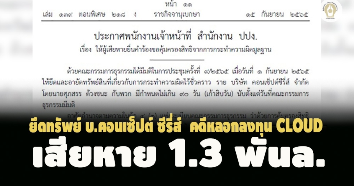 - บ.คอนเซ็ปต์ ซีรี่ส์ คดีหลอกลงทุน CLOUD อดีต ขรก.หุ้นใหญ่ โอนปี 64 –สรรพากรสอบด้วย