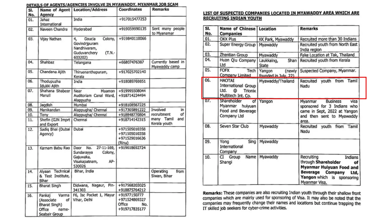 กรณีสำนักข่าวอิศรา (www.isranews.org) นำเสนอข่าวสถานทูตอินเดีย ณ นครย่างกุ้ง ประเทศเมียนมา ได้มีการเปิดรายชื่อบริษัทและนายหน้าจำนวนทั้ง 36 แห่งซึ่งเป็นที่ต้องการตัวในฐานะว่ามีพฤติกรรมการค้ามนุษย์ โดยบริษัทดังกล่าวนั้นพบว่าจะมีการหลอกลวงผู้ที่มีทักษะทางด้านเทคโนโลยีสารสนเทศหรือไอทีมาเพื่อทำงานสิ่งที่เรียกว่าโรงงานการฉ้อโกงทางไซเบอร์ที่ประเทศเมียนมา