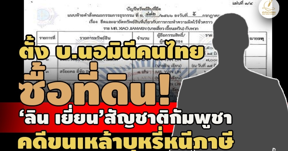 เปิดคำสั่ง ปปง. ยึดทรัพย์ 241.7 ล. ‘เสี่ยว เจี้ยนเหวิน’ กลุ่มคนจีน พวก คดีขนเหล้าบุหรี่หนีภาษี ผลสอบระบุชัด‘ลิน เยี่ยน’ สัญชาติกัมพูชา หน.ขบวนการ เจ้าของแท้จริง พฤติกรรมตั้งบริษัทนอมินีคนไทยกว้านซื้อที่ดิน เลี่ยง กม. เสร็จจดทะเบียนเปลี่ยนกก. ผู้ถือหุ้นเป็นของตนเอง