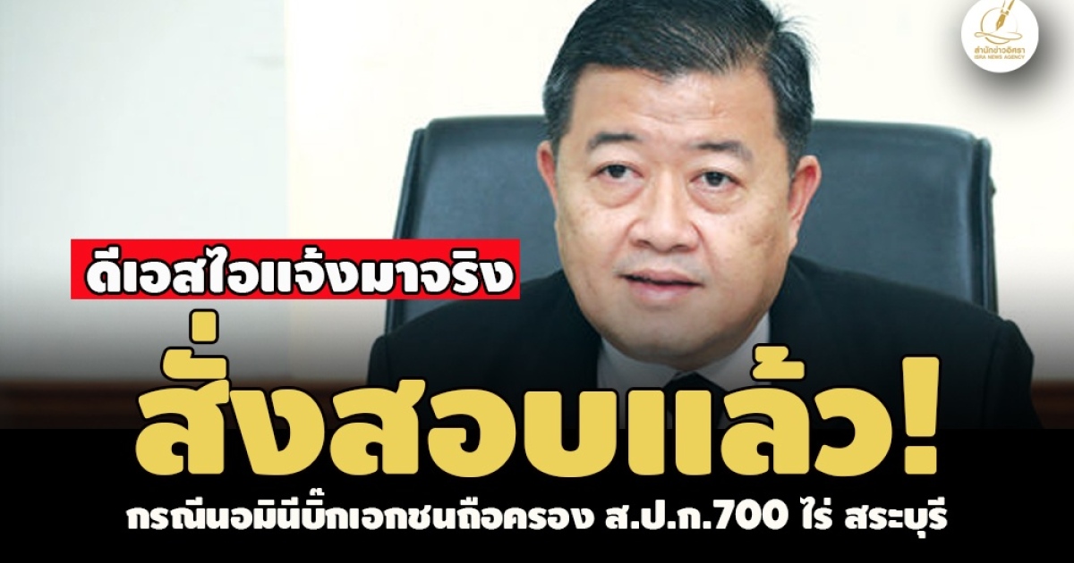 'วิณะโรจน์ ทรัพย์ส่งสุข' เลขาธิการ ส.ป.ก. ยืนยันเป็นทางการ ดีเอสไอส่งข้อมูลปัญหานอมินีบิ๊กเอกชนถือครองที่ ส.ป.ก.700 ไร่ สระบุรี ให้จริง สั่งการจังหวัดเข้าตรวจสอบแล้ว เน้นย้ำให้ดูคุณสมบัติผู้ได้รับแจก กระบวนการขั้นตอน ลั่นหากพบดำเนินการไม่ถูกต้องให้จัดการตามกฎหมายเด็ดขาด