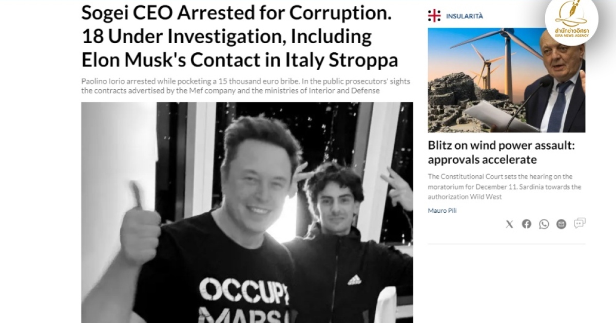 ส่องคดีทุจริตโลก สำนักข่าวอิศรา (www.isranews.org) สัปดาห์นี้ขอนำเสนอประเด็นความไม่โปร่งใสที่เกี่ยวข้องกับนายอีลอน มัสก์ มหาเศรษฐีระดับโลก โดยสำนักข่าวในประเทศอิตาลีได้รายงานกรณีที่สำนักอัยการอิตาลีได้เดินหน้าการสอบสวนจนนำไปสู่การจับกุมนายเปาลิโน ไอโอริโอ (Paolino Iorio) ผู้จัดการทั่วไปที่รัฐวิสาหกิจชื่อว่า Sogei ซึ่งถูกควบคุมโดยกระทรวงเศรษฐกิจอิตาลี โดยรัฐวิสาหกิจดังกล่าวนั้นมีส่วนในการจัดการระบบคอมพิวเตอร์บริหารงานสาธารณะ