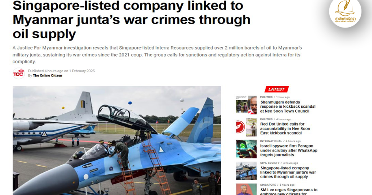 เรียบเรียงจาก:https://www.theonlinecitizen.com/2025/02/01/singapore-listed-company-linked-to-myanmar-juntas-war-crimes-through-oil-supply/