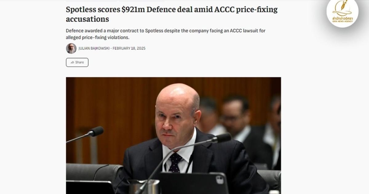 เรียบเรียงจาก:https://www.themandarin.com.au/286720-spotless-scores-921m-defence-deal-amid-accc-price-fixing-accusations/