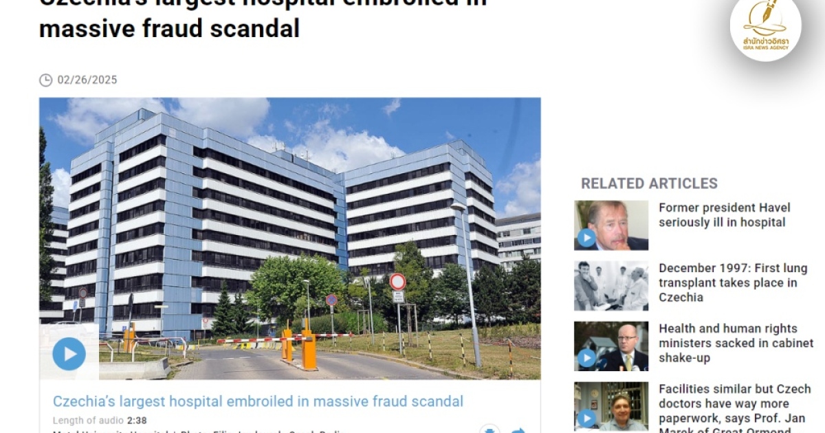 ส่องคดีทุจริตโลก สำนักข่าวอิศรา (www.isranews.org) สัปดาห์นี้ขอเสนอกรณีการทุจริตการสร้างโรงพยาบาลในประเทศเช็คเกีย