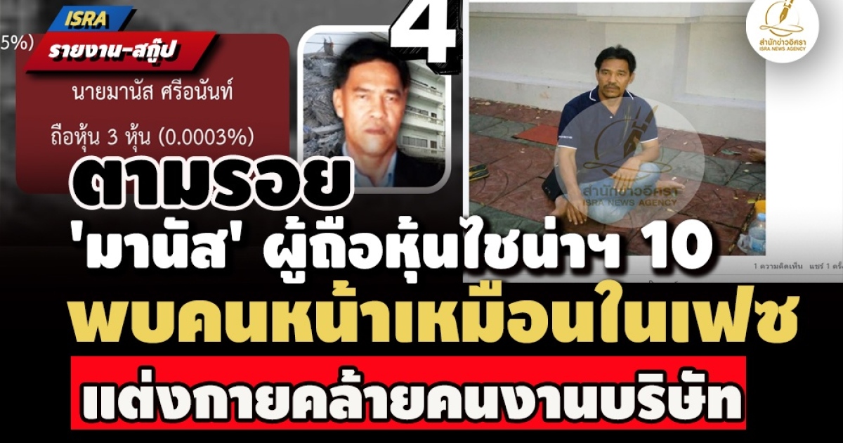 "...สำนักข่าวอิศรา แกะรอยข้อมูลในสื่อโซเชียลมีเดีย เปรียบเทียบรูปภาพ นายมานัส ศรีอนันท์ ที่กรมสอบสวนคดีพิเศษ เผยแพร่ไว้ในเอกสารตรวจสอบข้อมูลทางธุรกิจของ นายมานัส ศรีอนันท์ พบว่ามีเฟซบุ๊กของบุคคลหนึ่ง ใช้ชื่อว่า มานัส ศรีอนันท์ หน้าตาเจ้าของเฟซบุ๊ก เหมือนกับ นายมานัส ศรีอนันท์ ที่ปรากฏภาพในเอกสารของกรมสอบสวนคดีพิเศษ โดยในเฟซบุ๊กชื่อว่า มานัส ศรีอนันท์ ดังกล่าว มีการโพสต์ภาพถ่ายบุคคลไว้ ในช่วงปี 2560-2561 ขณะที่การแต่งกายเจ้าของเฟซบุ๊ก คล้ายคนงานบริษัท..."