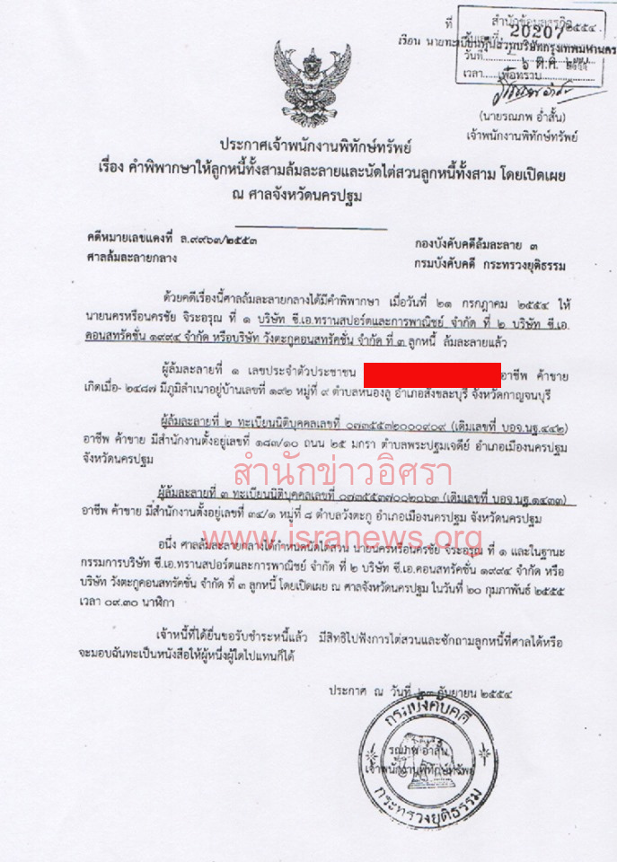 @ เจ้าหนี้ฟ้องล้มละลาย