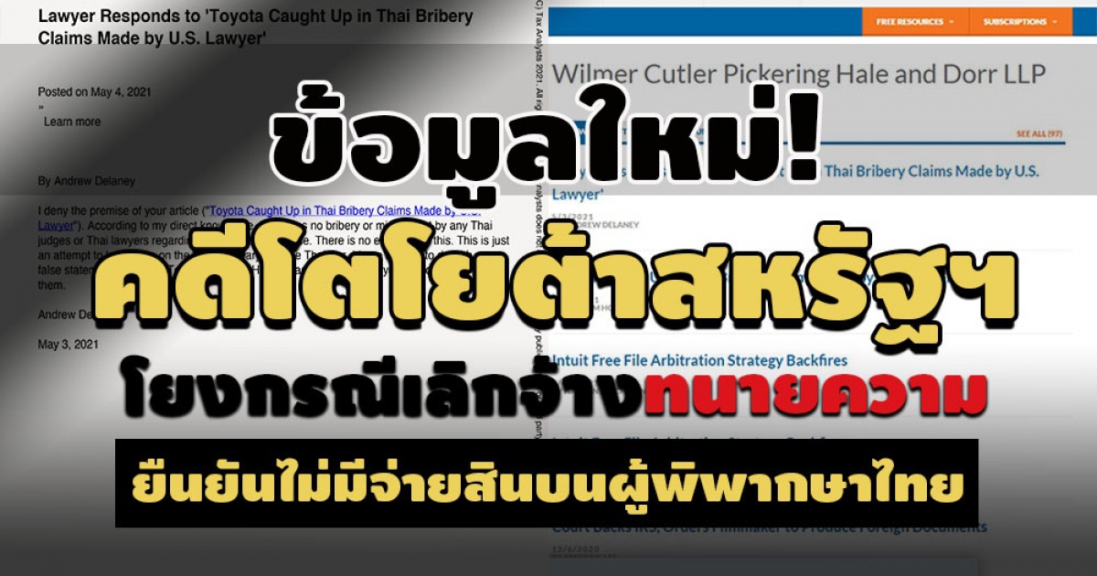 ล่าสุด สำนักข่าวอิศรา (www.isranews.org) สืบค้นฐานข้อมูลในต่างประเทศ พบรายงานข่าวที่เกี่ยวข้องกับกรณีนี้เพิ่มเติม มีเนื้อหาเชื่อมโยงกับคดีความการเลิกจ้างนายแอนดรูว์ เดลานีย์ อดีตทนายความจากสำนักกฎหมายบิ๊กลอว์ (Big Law) ที่เคยทำงานในฐานะทีมงานที่ถูกว่าจ้างและกำกับดูแลจากบริษัทวิลเมอร์เฮล ให้ดำเนินการสอบสวนภายในบริษัทโตโยต้า บนเว็บไซต์ taxnotes.com ซึ่งเป็นเว็บไซต์การรายงานข่าวด้านกฎหมายของสหรัฐอเมริกา