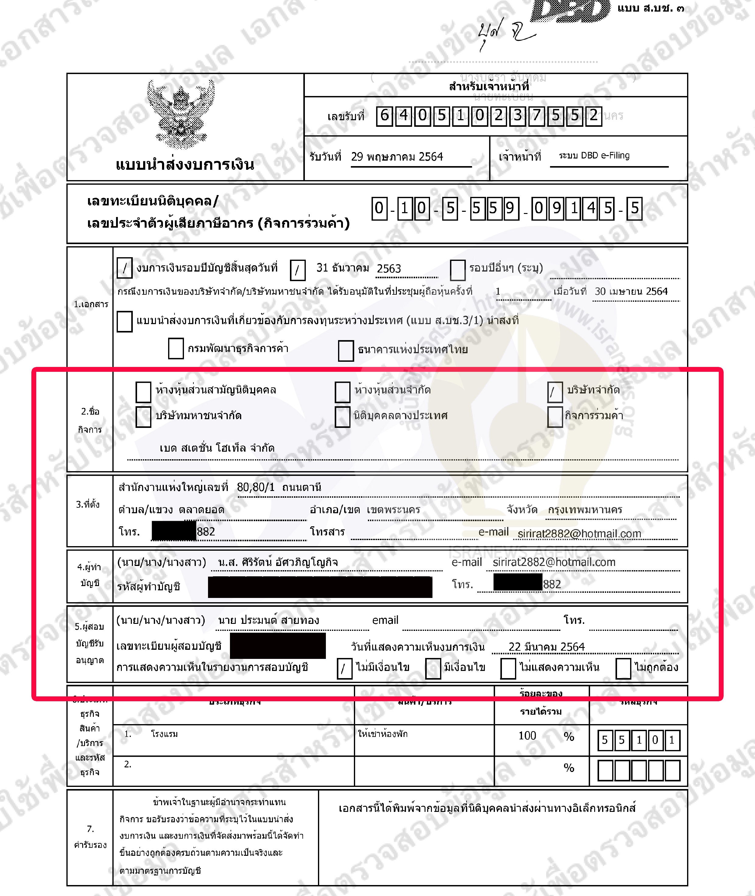 พบว่า บริษัท ทรัพย์ธาราวัสดุ จำกัด แจ้งเบอร์โทรศัพท์ติดต่อหมายเลข ********882 อีเมล sirirat2882 @ hotmail.com เหมือนกับ บริษัท เบด สเตชั่น โฮเท็ล จำกัด และ บริษัท นทีชลกิจ จำกัด