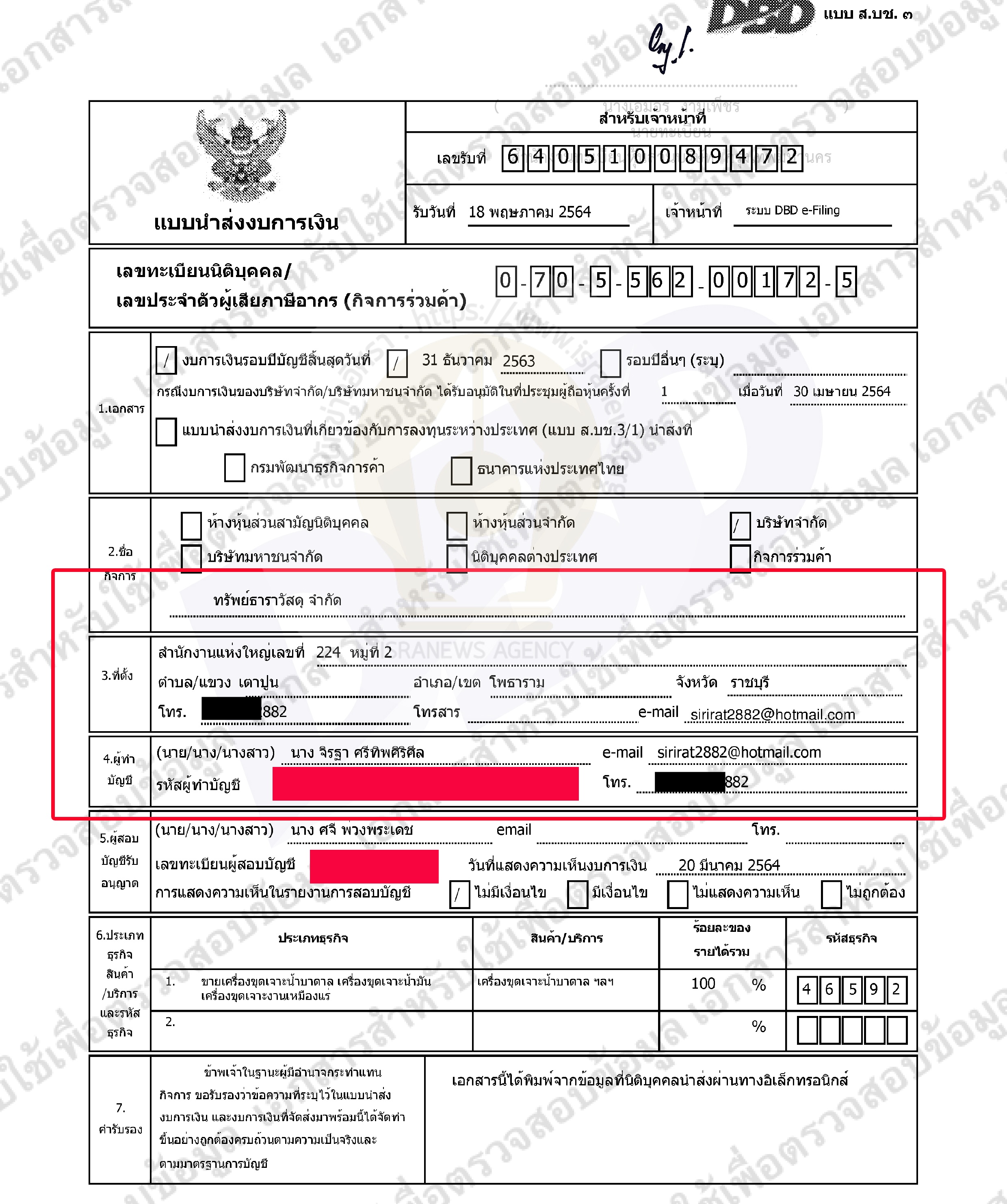 จากการตรวจสอบเอกสารจดทะเบียนจัดตั้ง บริษัท ทรัพย์ธาราวัสดุ จำกัด ที่ปรากฏชื่อได้รับงานว่าจ้างจาก กรมทรัพยากรน้ำบาดาล ในช่วงปี 2563-2564 จำนวน 35 โครงการ มูลค่า 69.66 ล้านบาท