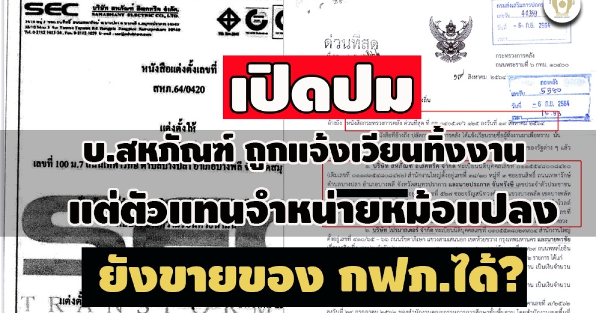 ขณะที่เมื่อวันที่ 20 สิงหาคม 2564 หลังกระทรวงการคลังการออกหนังสือแจ้งเวียน ให้บริษัท สหภัณฑ์ อิเลคทริค จำกัด เป็นผู้ทิ้งงาน ตามหนังสือลงวันที่ 19 สิงหาคม 2564 เพียง 1 วัน