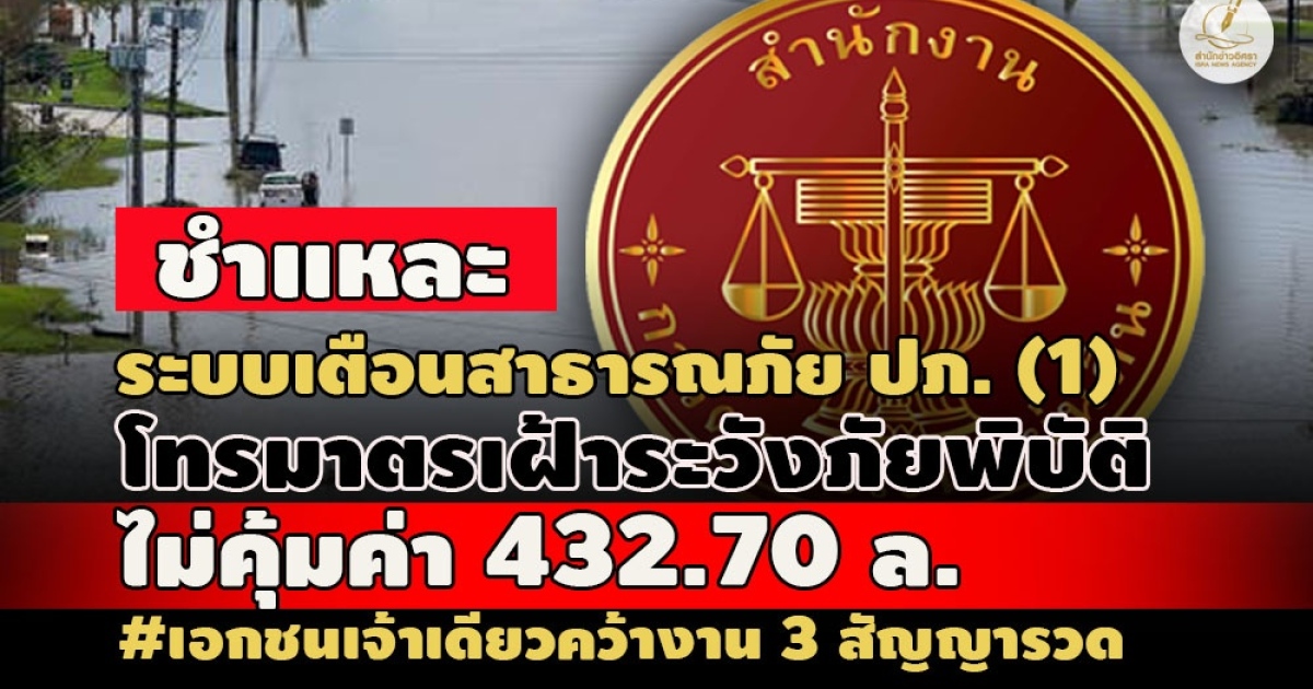 สืบเนื่องจากสำนักข่าวอิศรา (www.isranews.org) รายงานข่าวว่า เมื่อเร็ว ๆ นี้ สำนักงานการตรวจเงินแผ่นดิน (สตง.) ได้เผยแพร่ผลการตรวจสอบผลสัมฤทธิ์และประสิทธิภาพการดำเนินงานการบริหารระบบเตือนสาธารณภัย ที่ได้รับการจัดสรรงบประมาณจากรัฐบาล ในช่วงปี 2563-2565 จำนวน 1,074.95 ล้านบาท พบว่า การพัฒนาระบบเฝ้าระวังภัยพิบัติ (โทรมาตร) ไม่บรรลุวัตถุประสงค์ที่กำหนด ระบบข้อมูลสนับสนุนการตัดสินใจ (Decision Support System: DSS) คาดการณ์ภัยพิบัติล่วงหน้า 1 วัน ในระดับพื้นที่ขาดความแม่นยำ การเตรียมความพร้อมรับมือและอพยพไม่เป็นไปตามแนวทางและวัตถุประสงค์ที่กำหนด ทำให้หน่วยงานที่รับผิดชอบไม่สามารถ นำข้อมูลที่มาจากสภาพแวดล้อมในพื้นที่จริงมาใช้ประกอบการวิเคราะห์และคาดการณ์สาธารณภัยเพื่อแจ้งเตือนภัยไปยังพื้นที่ได้อย่างมีประสิทธิภาพ อีกทั้งประชาชนในพื้นที่เสี่ยงภัยยังไม่สามารถเตรียมความพร้อมรับมือกับสาธารณภัยที่เกิดขึ้นได้อย่างทันท่วงที ซึ่งอาจก่อให้เกิดความเสียหายต่อชีวิตและทรัพย์สินของประชาชน และทำให้รัฐอาจต้องใช้จ่ายงบประมาณจำนวนมากในการบรรเทาและฟื้นฟูสาธารณภัยที่เกิดขึ้น ซึ่งย่อมส่งผลต่อระบบเศรษฐกิจโดยรวมของประเทศ นอกจากนี้ ยังทำให้เกิดความไม่คุ้มค่าในการใช้จ่ายงบประมาณเพื่อดำเนินโครงการเฝ้าระวังและ แจ้งเตือนภัยเป็นจำนวนเงินประมาณ 514 ล้านบาท
