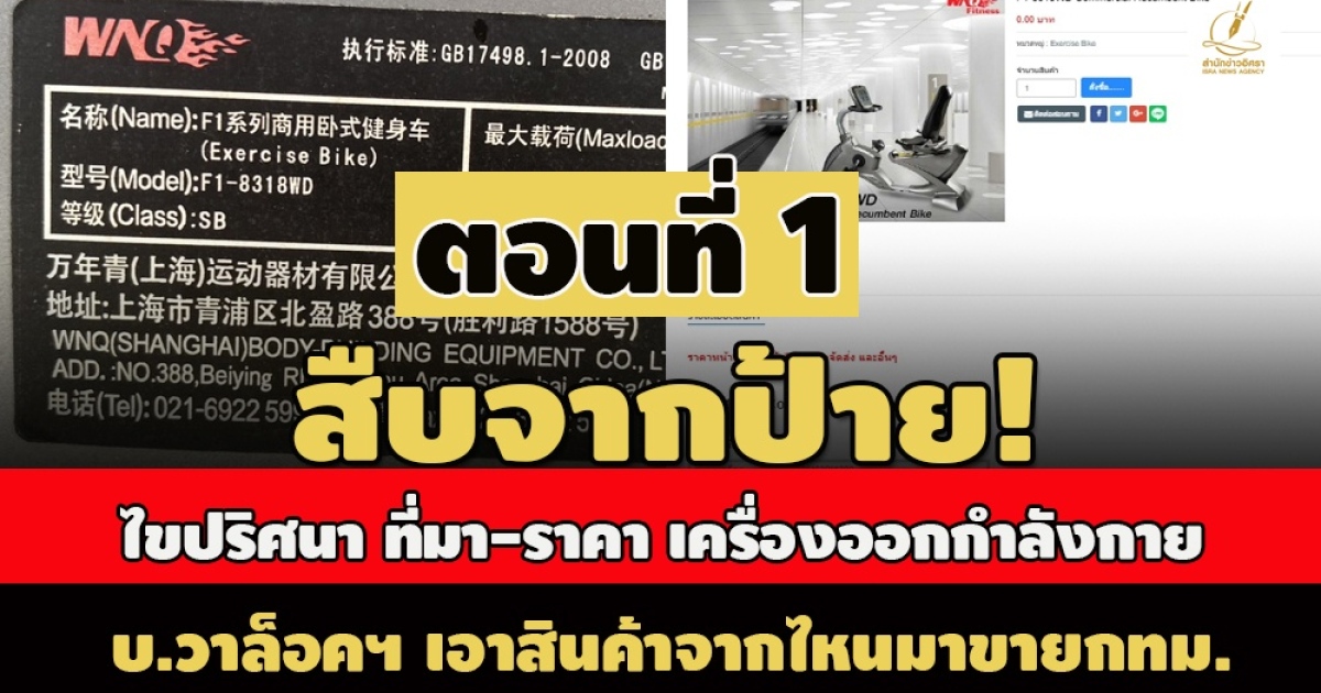 ขณะที่ เครื่องออกกำลังกายสินค้าของจีน ยี่ห้อ WNQ มีตัวแทนจำหน่ายในประเทศไทยด้วย และสำนักข่าวอิศรา ได้เข้าทำการติดตามตรวจสอบข้อมูลเชิงลึกส่วนนี้แล้วเช่นกัน
