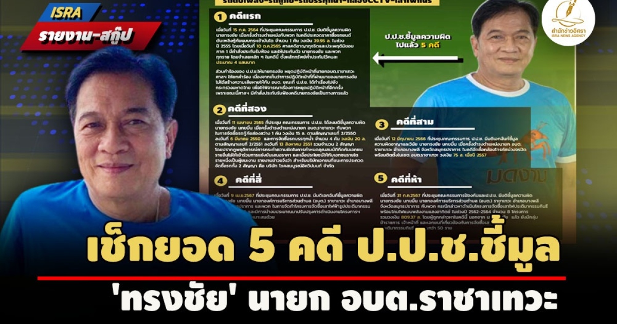 - ประเดิมล็อตแรกจัดซื้อ 5 ปีรวด! อนุฯ ป.ป.ช.สรุปสำนวนคดีเสาไฟกินรี อบต.ราชาเทวะแล้ว