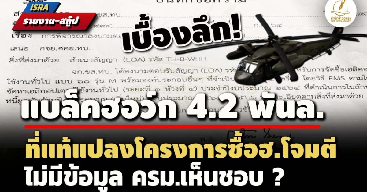 เบื้องลึก ทบ. จัดซื้อ แบล็คฮอว์ก 4 ลำ 4.2 พันล. ปี 2564 ที่แท้เปลี่ยนแปลงโครงการจัดหาเฮลิคอปเตอร์โจมตี ตามมติ ครม. 20 ต.ค.2563 เป็นจัดซื้อ ฮ.แบบใช้งานทั่วไปแบบ ไม่มีข้อมูลผ่านความเห็นชอบ ครม./สำนักงบประมาณ